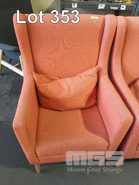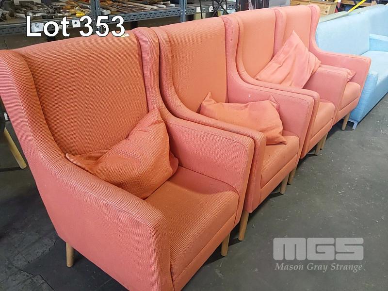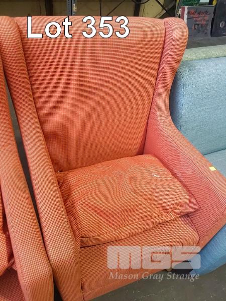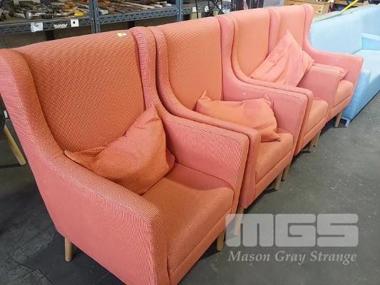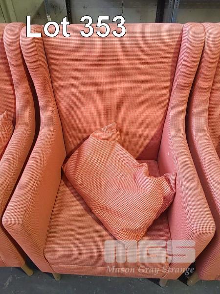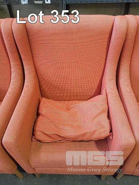4 x MATCHING FABRIC PLAID PATTERN ARMCHAIRS & CUSHIONS