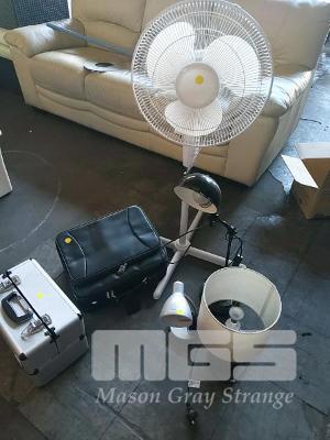 LAPTOP TRAVEL BAG, TRAVEL HARD CASE, PEDISTAL FAN AND 3 x TABLE LAMPS