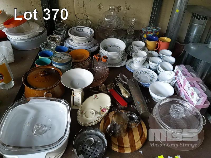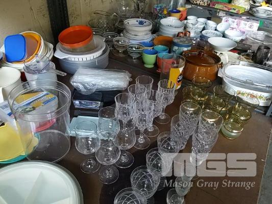 ASSORTED COOKWARE, TABLEWARE, GLASSWARE, CRYSTALWARE AND PLASTIC-WARE ETC (2 x BAYS)