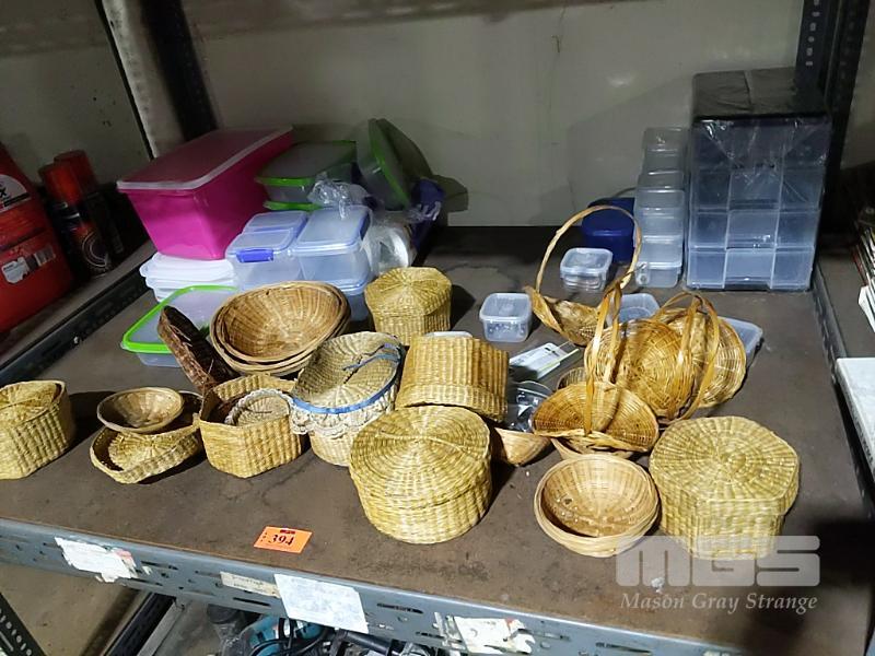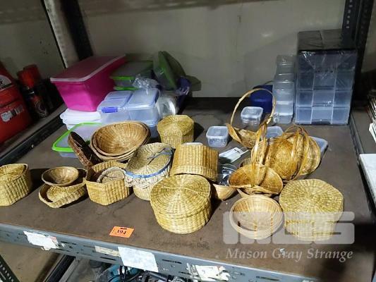 COLLECTION OF SMALL CANE BASKETS AND PLASTIC TUBS