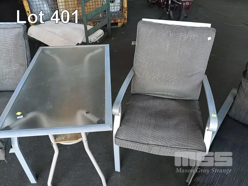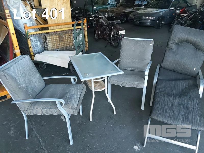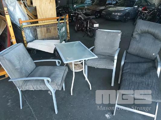 ALUMINIUM OUTDOOR TABLE & CHAIRS AND MATCHING SUN CHAIR