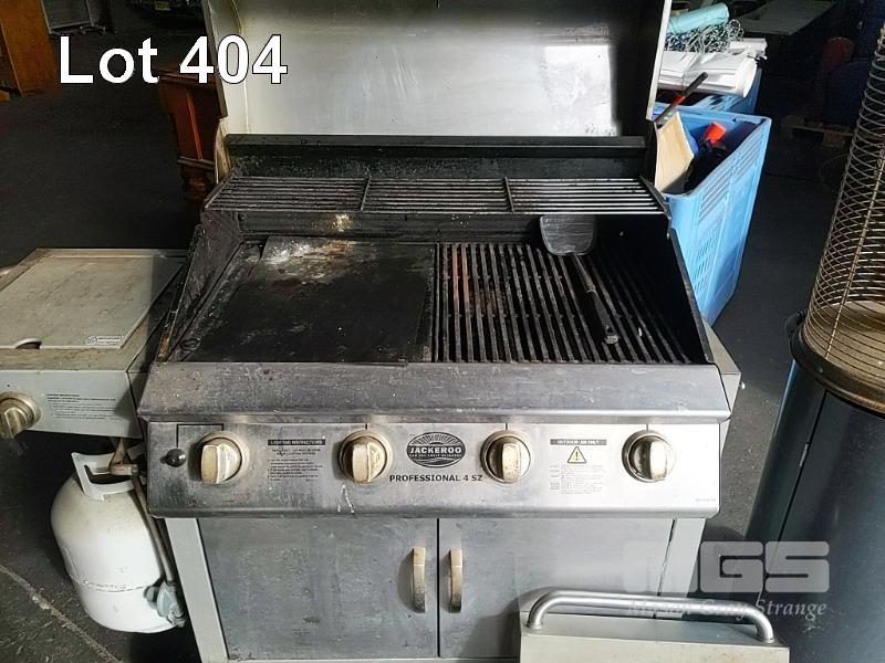 JACKAROO "PROFESSIONAL 4 SZ" GAS BBQ AND JACKAROO OUTDOOR GAS HEATER BOTH WITH LPG CYLINDERS (BOTH EXPIRED)