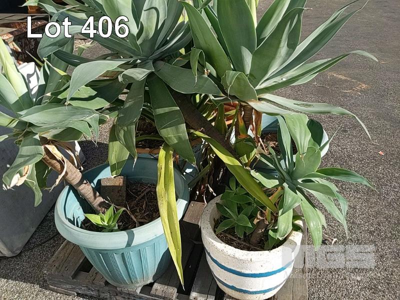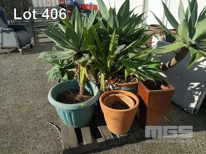 4 x LARGE POTTED PLANTS AND 3 x GARDEN POTS (CONTENTS ONE PALETTE)