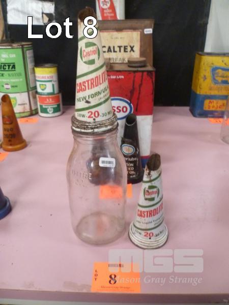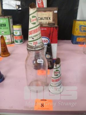 OIL BOTTLE, CLEANSKIN, 1 LITRE & 2 x CASTROLITE TIN OIL BOTTLE TOPS