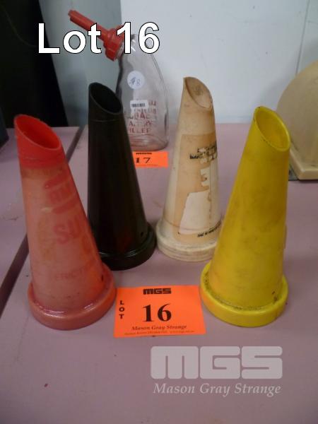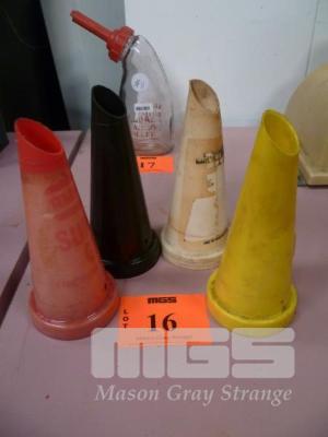 4 X PLASTIC OIL BOTTLE TOPS, 2 X CRACKED