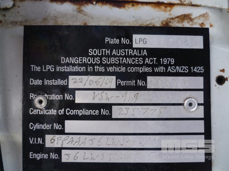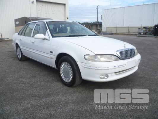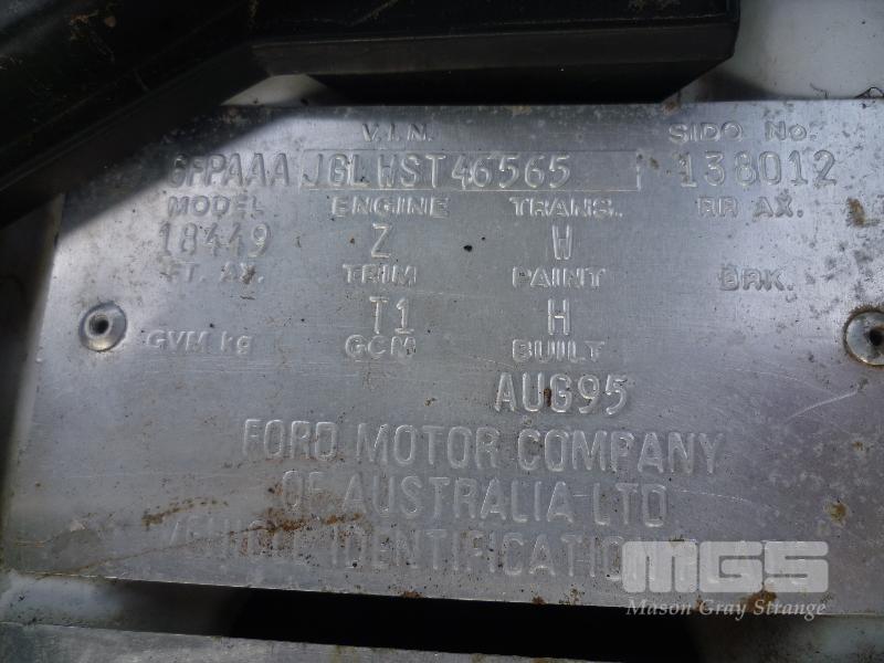 1995 FORD FAIRLANE GHIA SEDAN REG: NO PLATES (EXPIRED) VIN: 6FPAAAJGLWST46565 ENG: JGLWST46565 ODO: 263,066 KM V8 5.4 LITRE, 4 SPEED AUTOMATIC, PETROL/LPG, WHITE, 4 DOORS, 5 SEAT, ABS, AIR BAG, AIR CON, ALLOY WHEELS, CD PLAYER, CRUISE CONTROL, POWER STEERING, POWER WINDOWS, SPARE WHEEL, PREV PLATE # VSW-919 (NO PAPERS, WITH 2 KEY/S, WITH OWNER'S MANUAL, NO SERVICE BOOKS) CONDITION: WINDSCREEN - CRACK ALONG BASE BONNET - STRUTS REQUIRE REPLACEMENT