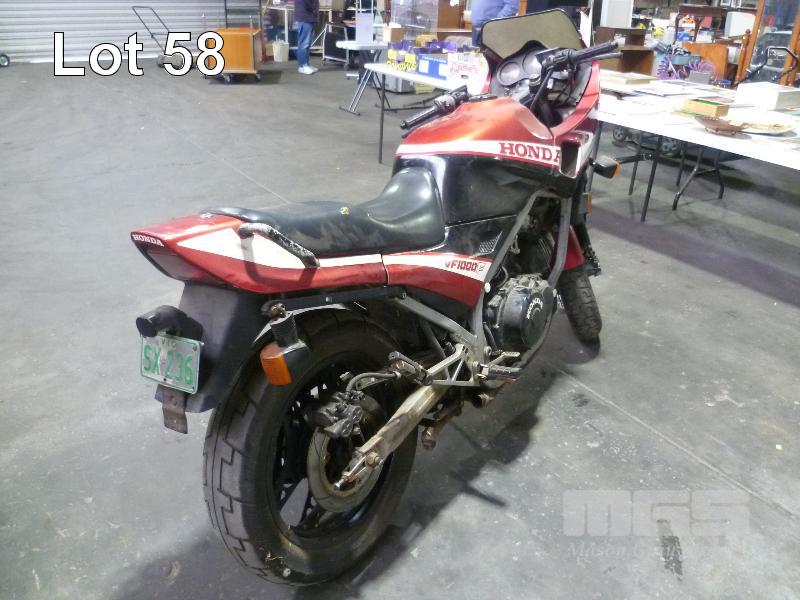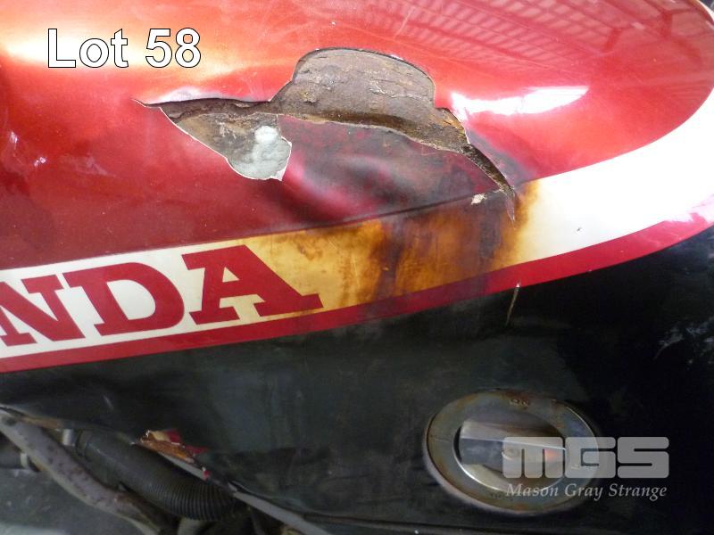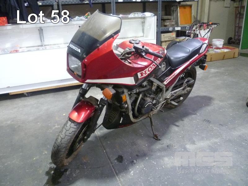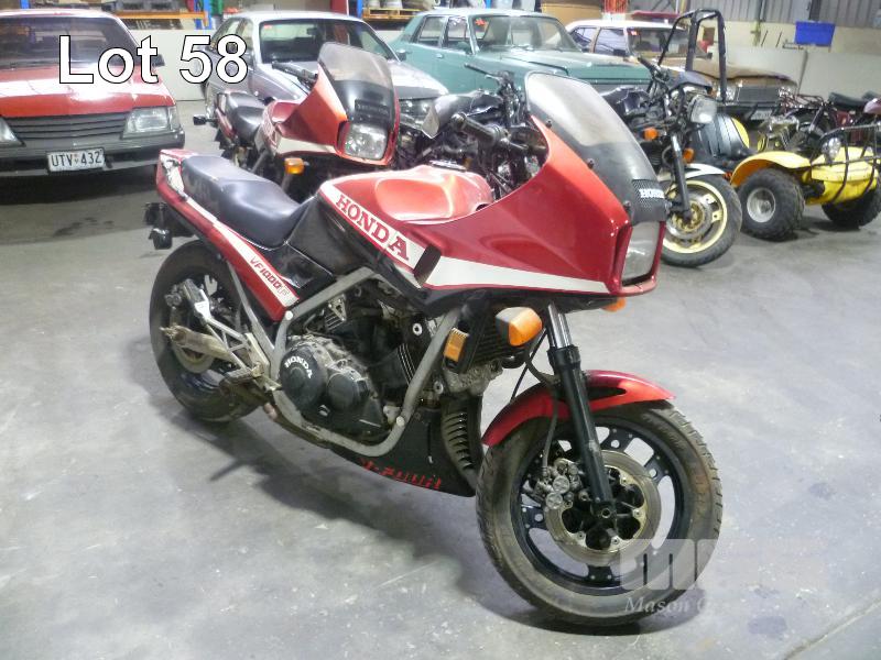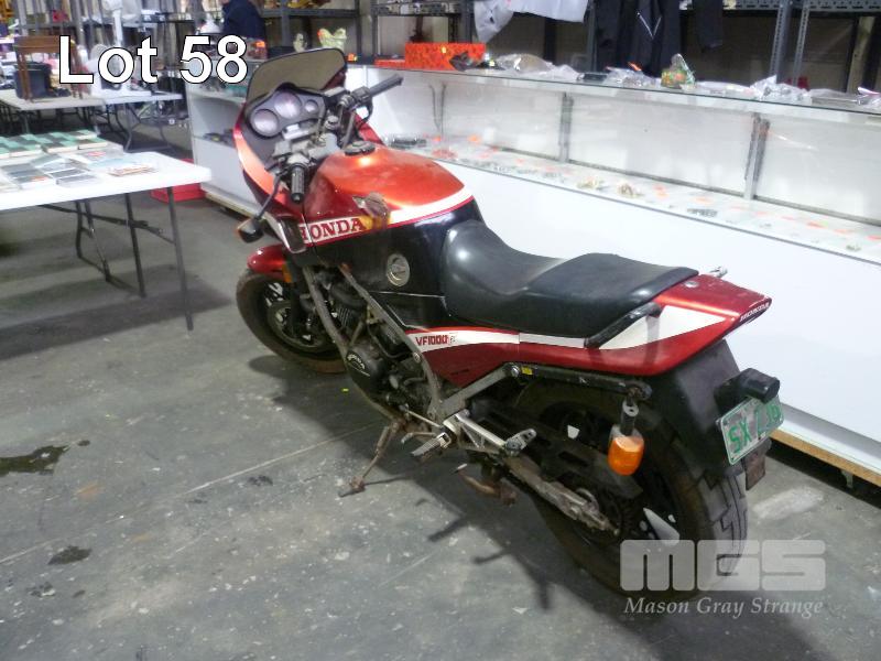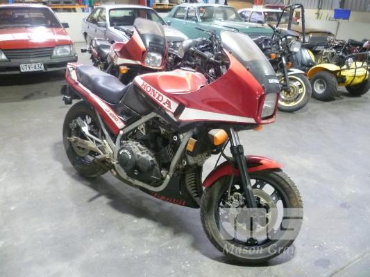 1984 RED HONDA VF1000F MOTORCYCLE REG: SX236 VIN: VF1000SC152001851 ENG: SC5E-2003089 1 KEY NO PAPERS ODO: 33,773 KM INDICATED DAMAGE TO FUEL TANK NO PAPERS, NO MIRRORS