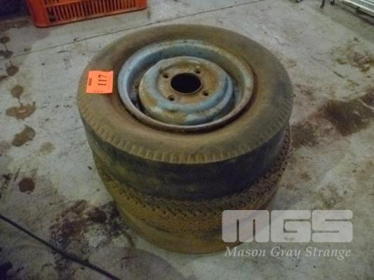 3 X SMALL RIMS & TYRES, 4 STUD, POSSIBLY MINI