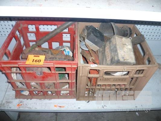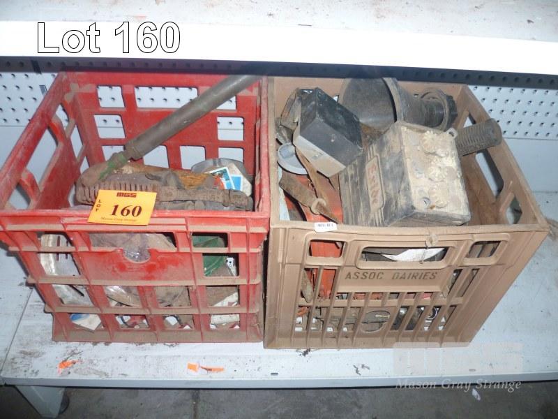 2 x CRATES ASSORTED VINTAGE MOTORCYCLE PARTS, INCL FOOT PEGS, TOOLS, ETC.