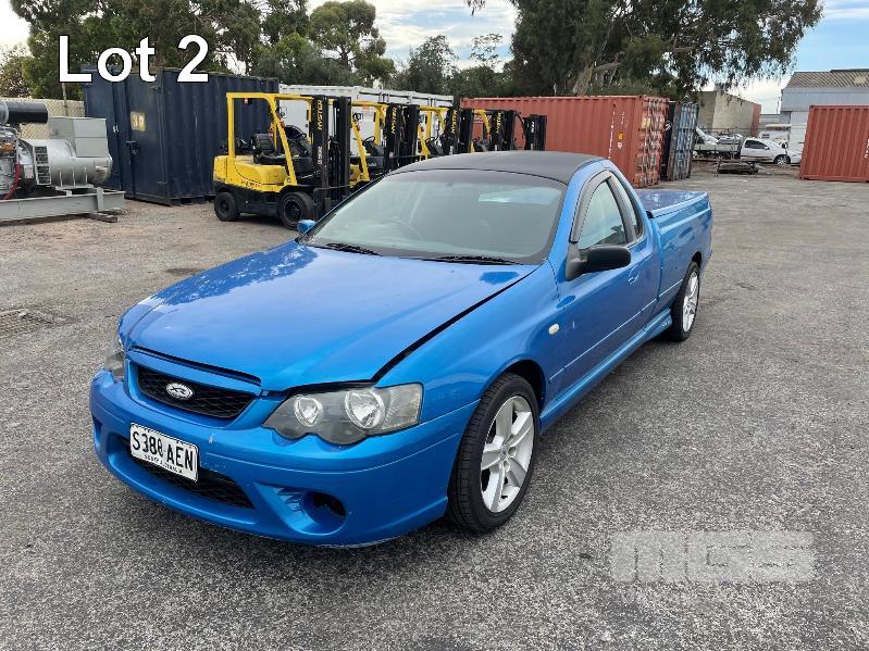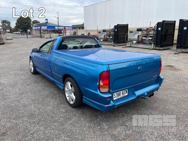 10/2003 (CP) FORD BA XR6 UTILITY REG: S388 AEN VIN: 6FPAAAJGCM3U37182 ODO: 298,468kms SHOWING 4 LITRE 6 CYLINDER, 4 SPEED AUTOMATIC TRANSMISSION, TURBO PETROL, BLUE DUCO, 2 DOORS, 2 SEAT, RWD ABS, AIR BAG, AIR CON, ALLOY WHEELS, CD PLAYER, CENTRAL LOCKING, CRUISE CONTROL, POWER STEERING, POWER WINDOWS, TONNEAU COVER, TOW BAR, TUB LINER **DEFECTED** CRACKED WINDSCREEN (SUSPENSION, TYRES & MIRRORS HAVE BEEN ATTENDED TO) KEY #2 (WITH 1 KEY/S) CONDITION: FRONT BUMPER - SCRATCHES DENTS, INTERIOR TRIM DAMAGE
