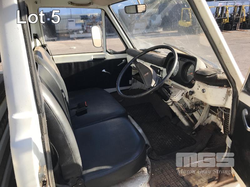 1970 TOYOTA DYNA 2000 4 X 2 TRAY TRUCK REG: REG 936 (SA) VIN: RU10-004986 ENG: 5R997433 ODO: 17,877 MILES GVM: 3,740 kg GCM: 4,860 kg ON THE TREE 4 SPEED MANUAL, SPRING SUSPENSION, WHITE, 7.50 R16 2 DOORS, 3 SEAT, STEEL TRAY, 300 x 220cm TRAY, 2 x MAUAL HOISTS CARRY BARS WITH OVERCAB FRAME, UNDER TRAY TOOL BOX REAR STEP KEY #28 (WITH PAPERS, WITH 1 KEY/S, NO OWNER'S MANUAL, NO SERVICE BOOKS)