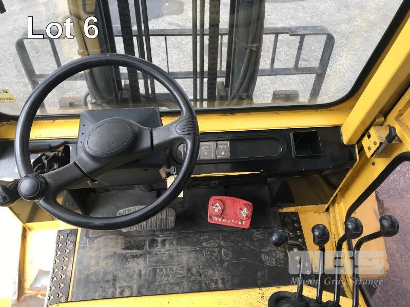 2006 HYSTER H500DX FORKLIFT HOURS: 17,036hours 6 CYLINDER, DIESEL, 5 TONNE S/NO: A232R03232D 2 STAGE MAST SIDE SHIFT TYNE ADJUST ENCLOSED FLOATING CAB A/C 3 SPEED MONOTROL PEDAL SOLID TYRES ISOLATOR EXTINGUSIHER KEY #43