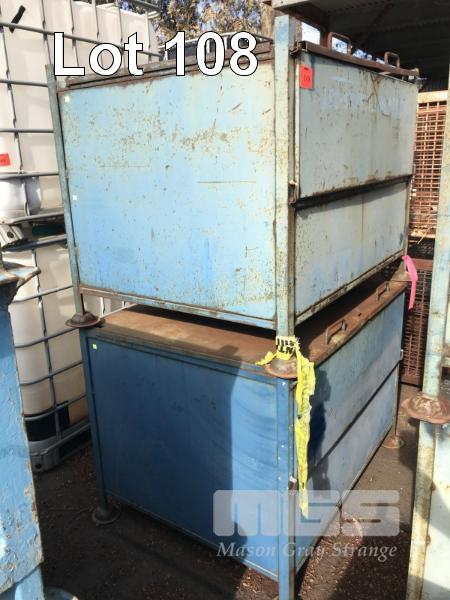 PAIR STACKABLE HINGED LID STEEL STILLAGES 120 x 90 x 75cm (H)