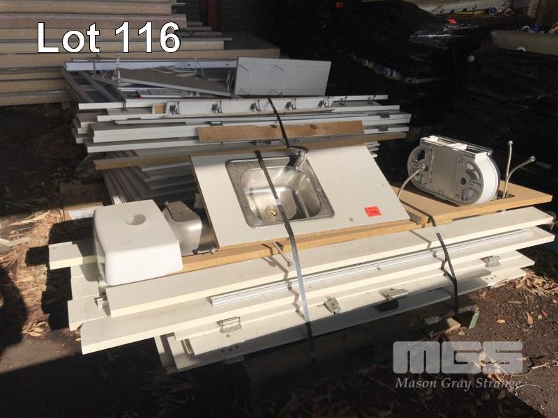 CHANGE ROOM FITOUT (SALVAGE) DOORS, BASINS, CLOTHES HOOKS, ETC. 2 x PALLETS
