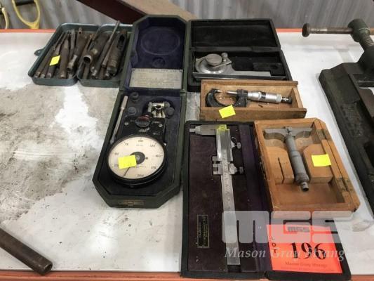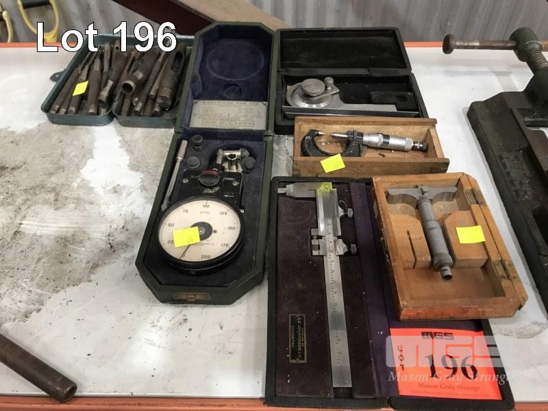ASSORTED METROLOGY INC HARDNESS TESTER 0-1" MICROMETER, MACHINIST ANGLE GAUGE & ASSORTED WAD & PIN PUNCHES