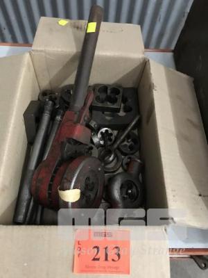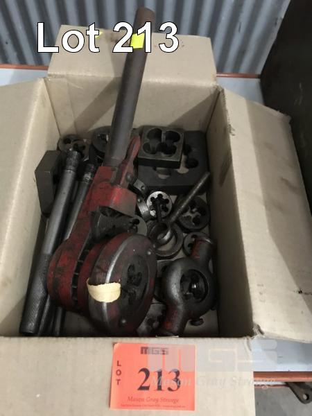 ASSORTED THREADING DIES, 1 x BOX & RATCHET HANDLE