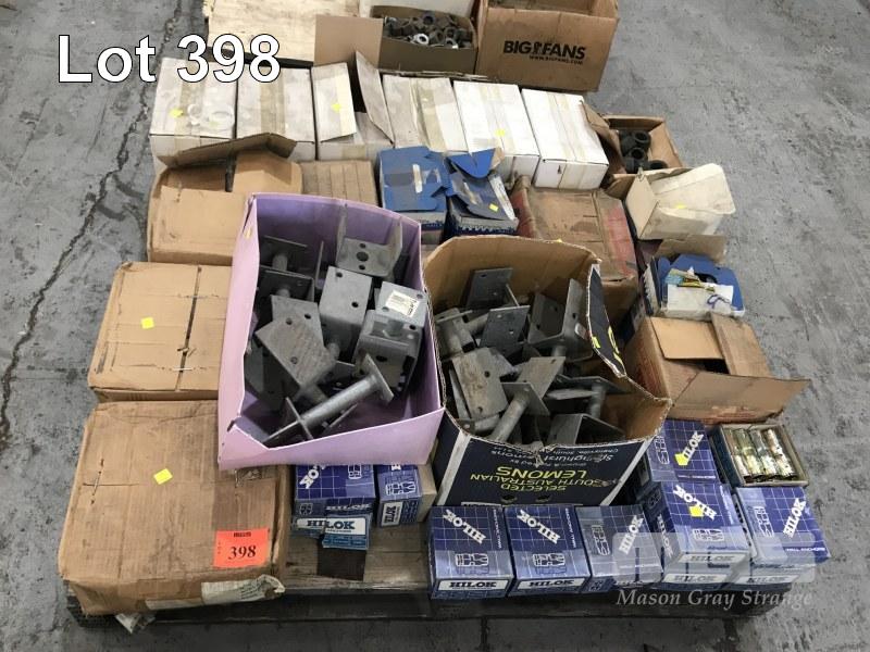 ASSORTED FASTENERS, SCREWS, NAILS, RIVETS, WALL ANCHORS & POST FEET, 1 x PALLET