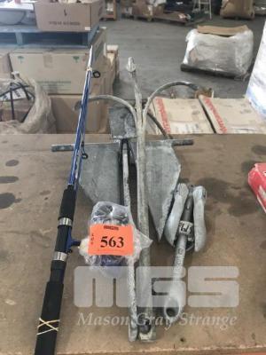 3 x ASSORTED ANCHORS & JARVIS WALKER 5' JUNIOR ANGLER ROD