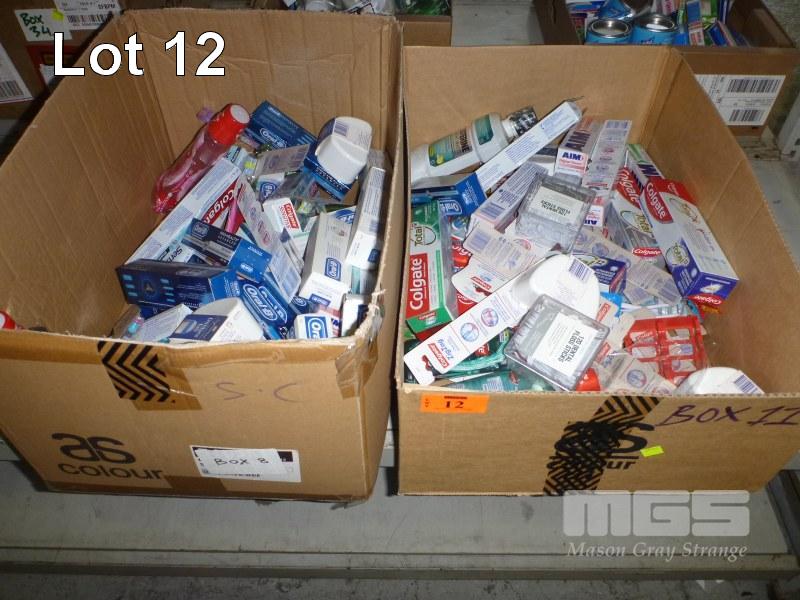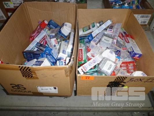 LARGE QUANTITY TOOTHPASTE, TOOTHBRUSHES, MOUTH WASH, FLOSS STICKS, ETC, 2 x BOXES