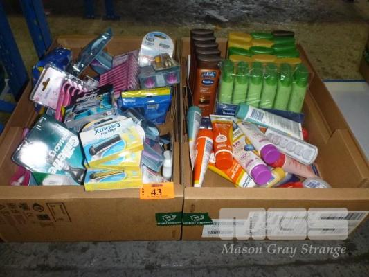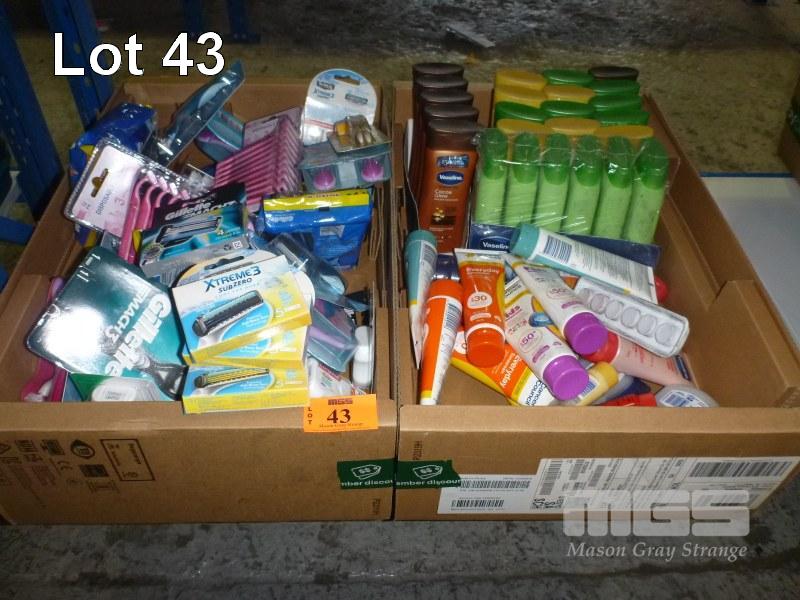 SHOWER CREAM, SUNSCREEN, RAZORS, ETC, 2 x BOXES