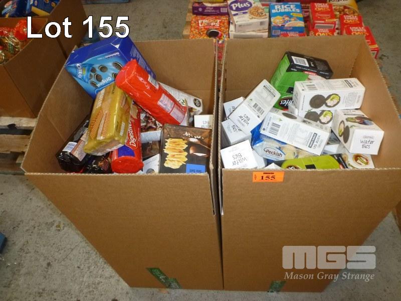 ASSORTED CHIPS, RICE CRACKERS, BISCUITS, ETC, 2 x BOXES