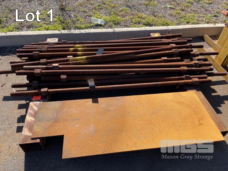 28 x THREADED RODS, 2 x NUTS, 1900 (L) x 45mm DIAMETER APPROX