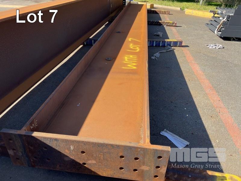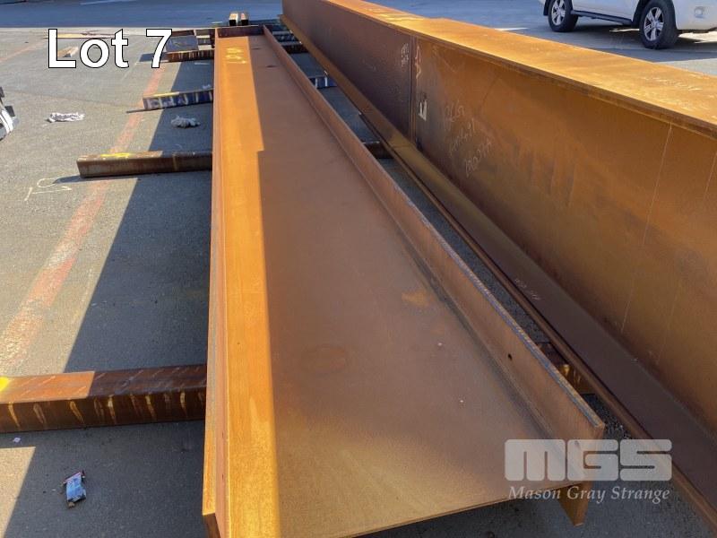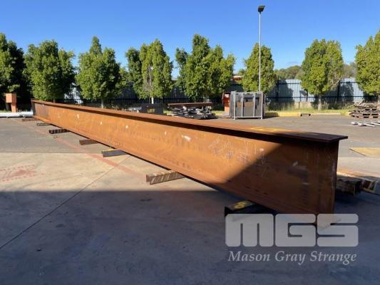 2 x LARGE FABRICATED I-BEAMS, 18 & 10.58m 970 x 350mm 30mm TOP & BOTTOM PLATE 12mm UPRIGHT NOT BEARERS