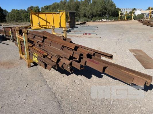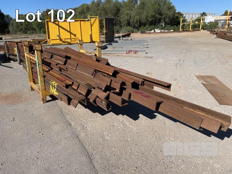STILLAGE OF HEAVY ANGLE SHORTS, UP TO 5m VARIOUS SIZES INCLUDING 125 x 125 x 16 100 x 100 x 10 100 x 75 x 5mm 100 x 125 x 10 150 x 90 x 8mm & 2 x LENGTHS 150UB OFFCUTS, APPROX 70 LENGTHS