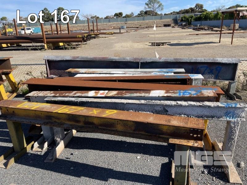 9 x ASSORTED HEAVY DUTY STEEL TRESTLES, 1 @ 4.5m, REMAINDER 2.2-2.6m