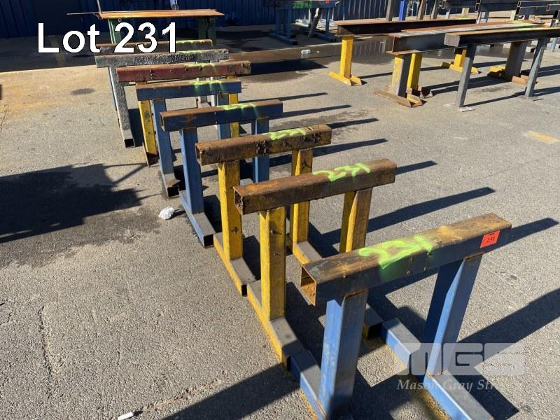 8 x STEEL TRESTLE STANDS, 2 @ 1200 x 760mm (H) 1 @ 1100 x 760mm (H) 3 @ 740 x 750mm (H) & 2 @ 700 x 760mm (H)