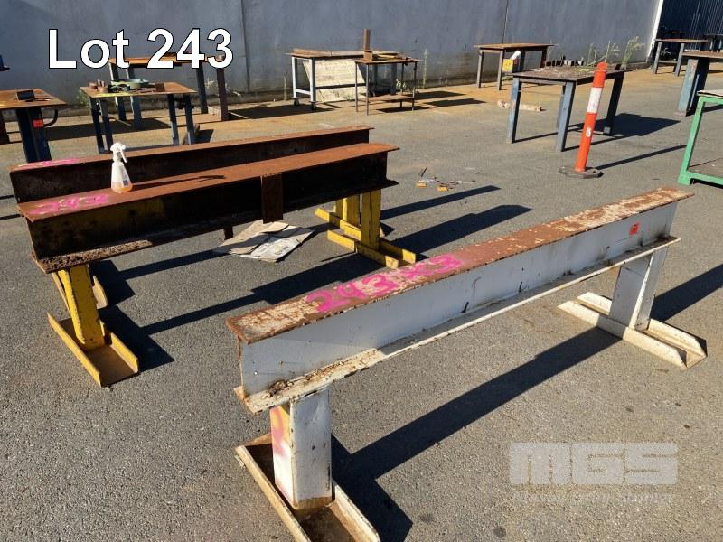 3 x STEEL TRESTLE STANDS, HEAVY DUTY 2 @ 2400 x 760mm (H) & 1 @ 2200 x 760mm (H)