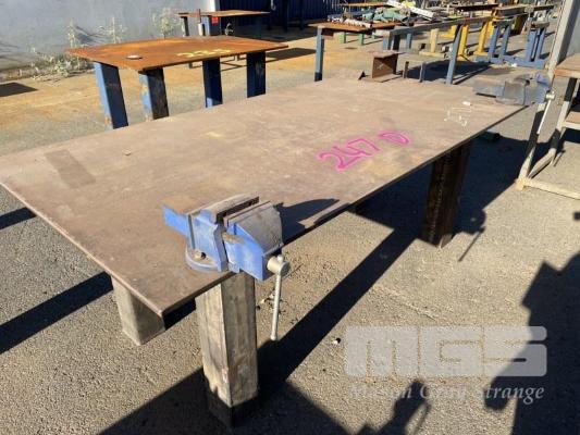 HEAVY DUTY PLATE TOP BENCH, 2100 x 1000 x 16mm & 2 x ENGINEERS VICES