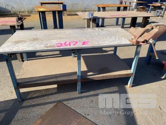 HEAVY DUTY PLATE TOP BENCH, 1800 x 850 x 10mm & ALUMINIUM TOP WITH OFFSET VICE