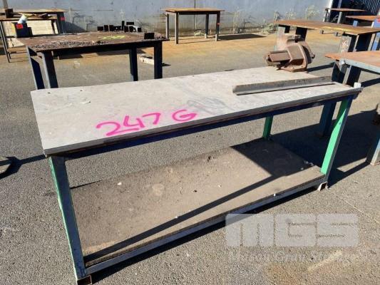 HEAVY DUTY PLATE TOP BENCH, 1800 x 850 x 10mm & ALUMINIUM TOP WITH OFFSET VICE