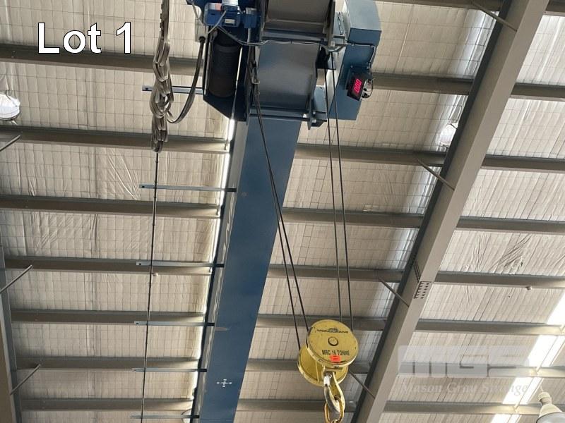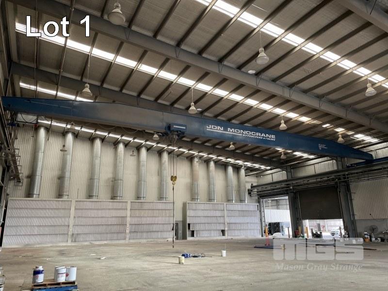 PAINT SHOP GANTRY CRANE, JDN MONOCRANE HYPER SPEED & GLIDE MRC 16 TONNE SINGLE GIRDER TOP RUNNING WITH WIRELESS REMOTE CONTROL & ANTI COLLISION DIGITAL READOUT SPAN: 33.43m (NOT INCLUDING RUNNING RAILS) BUYER TO DISCONNECT & REMOVE MORE DETAILS JDN CRANE SPECS ATTACHED