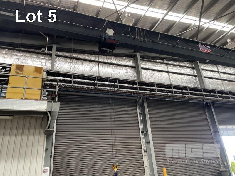 GANTRY CRANE, GMCC CRANES MRC 5 TONNE SINGLE GIRDER TOP RUNNING WITH WIRELESS REMOTE CONTROL & DIGITAL WEIGHT READOUT INTERNAL SPAN: 33.43m TOTAL SPAN: 33.77m (NOT INCLUDING RUNNING RAILS) BUYER TO DISCONNECT & REMOVE