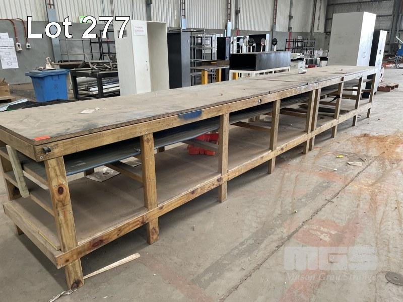 WORKSHOP BENCH, TIMBER TOP & FRAME, 3 TIER, 5650 x 1000 x 1030mm (H)