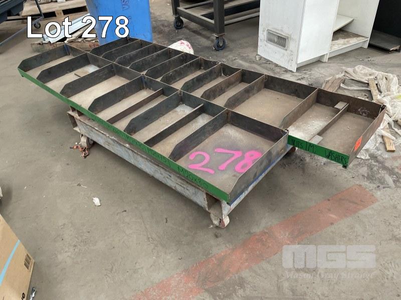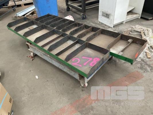 2 x STEEL TRAY SHELVES, 2200 x 440mm, HEAVY DUTY STEEL FRAME TROLLEY BASE, 1400 x 900 x 400mm (H) & STEL RACK, 1550 x 2000mm (H)