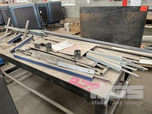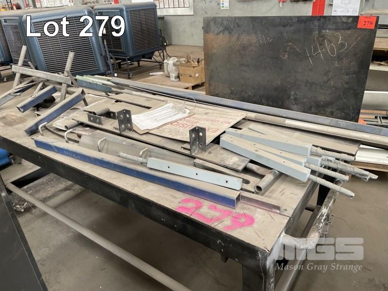 MOBILE WORK BENCH, HEAVY DUTY, TIMBER TOP, 2400 x 1200 x 910mm (H) & ASSORTED STEEL PARTS