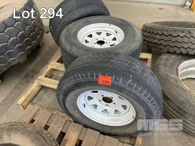 4 x WHITE 5 STUD RIMS & YOKOHAMA TYRE, GEOLANDERS, 265/70 R15