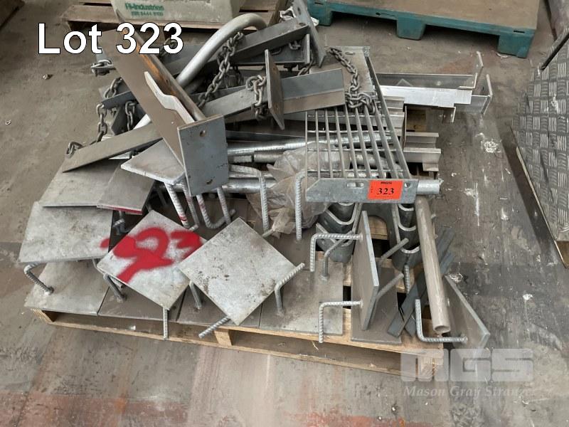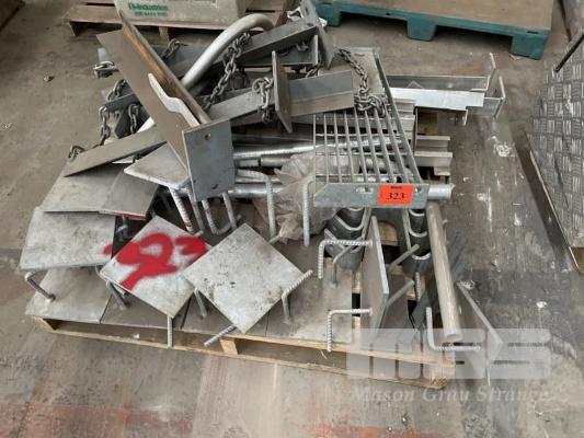 ASSORTED STEEL SECTIONS, 12 x GALV BASE PLATES & GALV MESH STEP