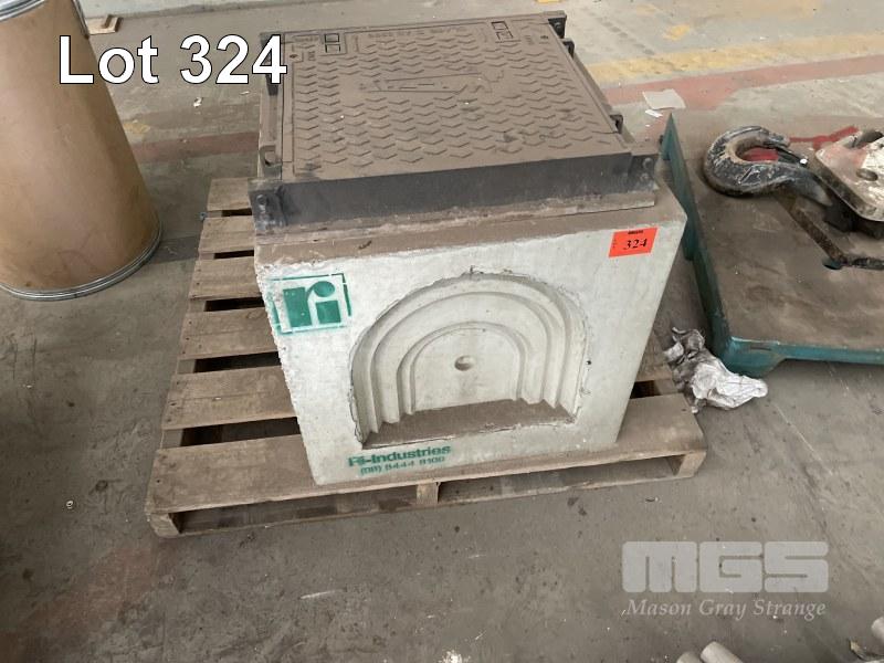 RI INDUSTRIES CONCRETE DRAIN PIT & CAST IRON COVER, 650 x 650 x 600mm