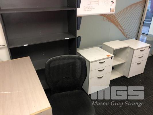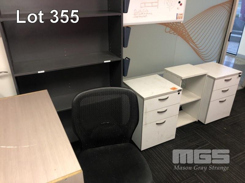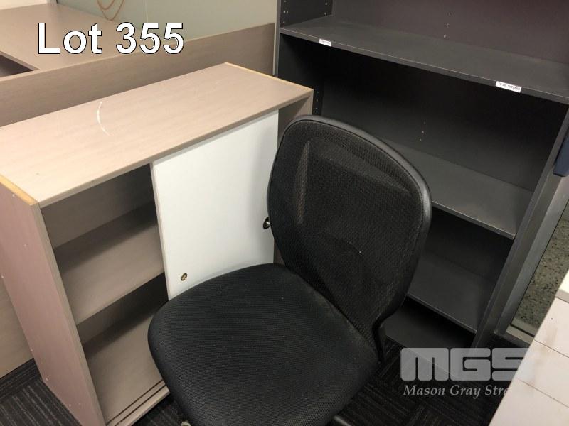 2 DOOR LAMINATE BOOKSHELF, BLACK OFFICE CHAIR & 2 x MOBILES