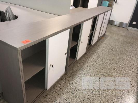 STORAGE CABINET, 8 x SLIDING DOORS, 3600 x 400 x 900mm (H), 4 PIECE MODULAR, WHITE/LIGHT BROWN