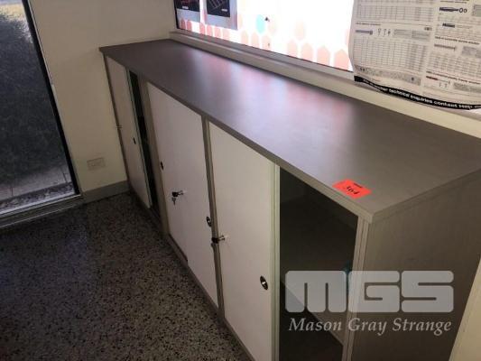 STORAGE CABINET, 6 x SLIDING DOORS, 2400 x 500 x 1100mm (H), 3 PIECE MODULAR, WHITE/LIGHT BROWN
