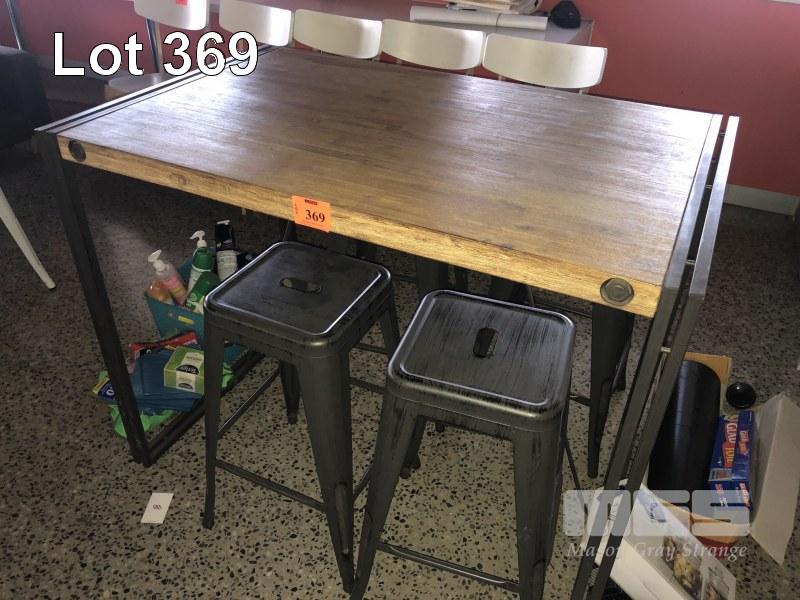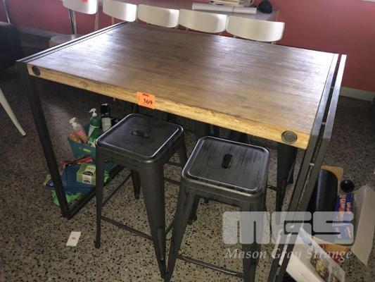 LUNCH TABLE, TIMBER TOP, STEEL FRAME, 1200 x 750 x 940mm WITH STEEL STOOLS, 650mm