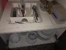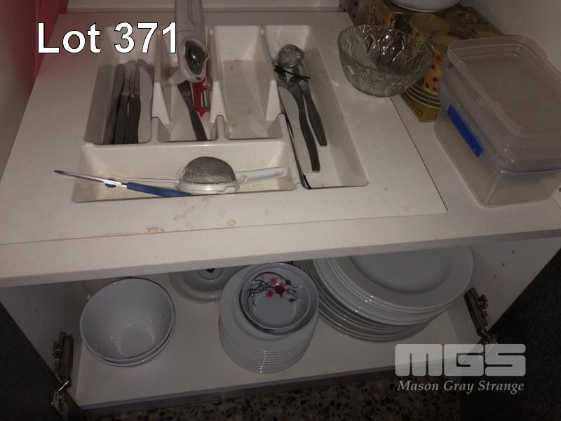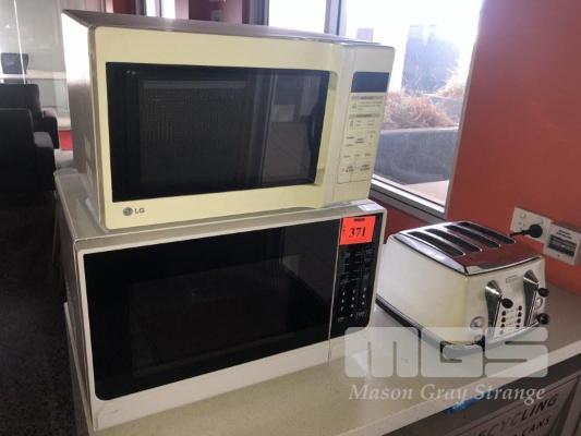 2 x MICROWAVES, LG & HOME CO, 4 PIECE TOASTER, SANDWICH PRESS & CONTENTS CUPBOARDS & DRAWERS, CUTLERY & GLASSWARE, ETC