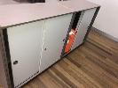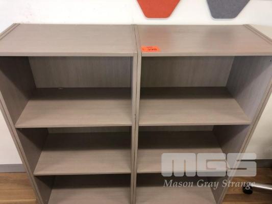 PAIR MATCHING BOOKCASES, JOINED, TIMBER LAMINATE, 1200 x 1170mm & 2 x CUPBOARDS, 2 x SLIDING DOORS, 900 x 880mm