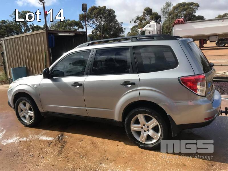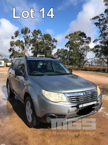 2009 SUBARU FORRESTER WAGON REG S075 BTS VIN JF2SH9KK4AG030108 148,000 KM PETROL, MANUAL, SILVER DUCO, CLOTH TRIM, AC,PS,EW,CC, TOWBAR, LIGHT BAR. (MINOR BUMPER DAMAGE ON FRONT)