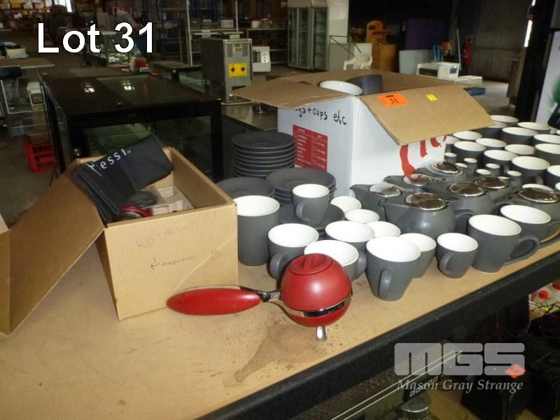 QUANTITY ESPRESSO CUPS, TEAPOTS, SAUCERS & MYPRESSI HANDHELD COFFEE MAKER